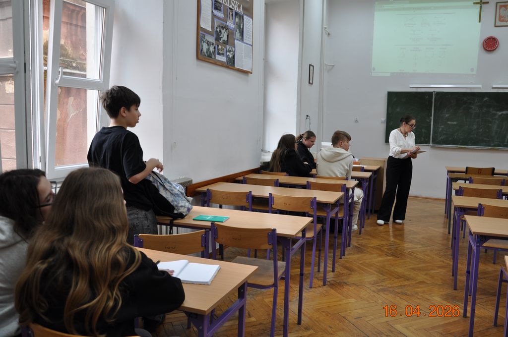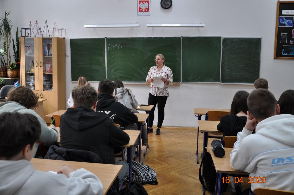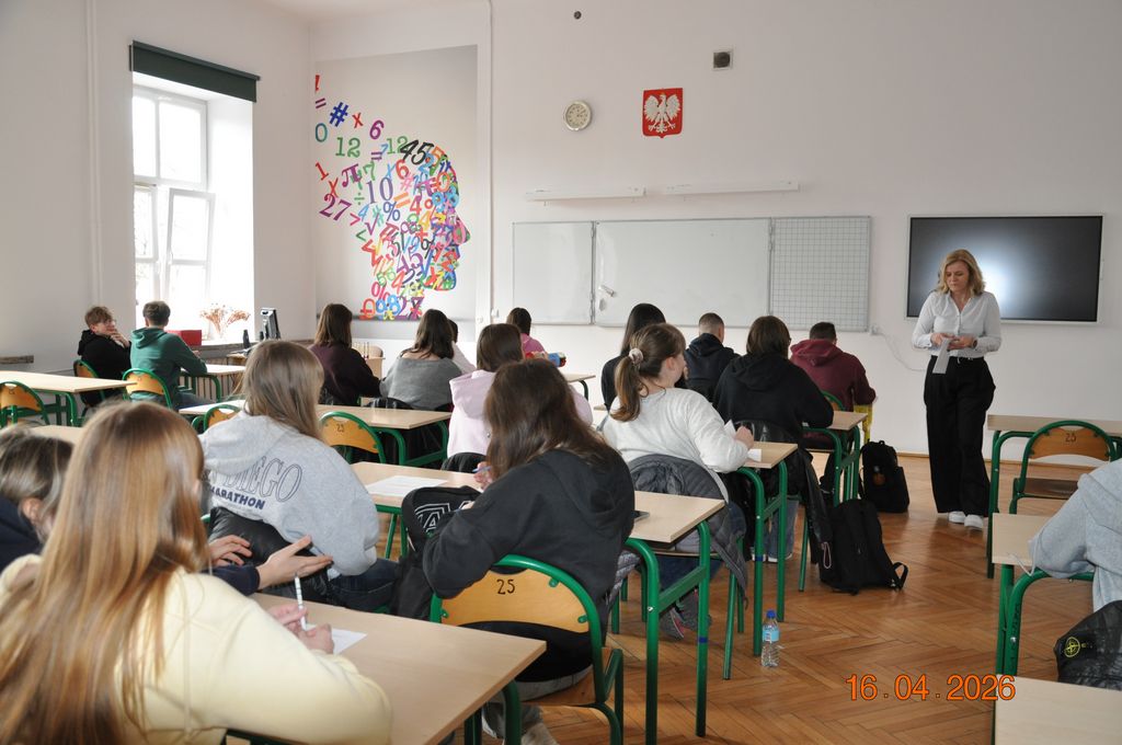 W naszej szkole odbyły się zajęcia dla uczniów klas ósmych szkoły podstawowej pt. „Egzamin ósmoklasisty z matematyki wcale nie musi być taki trudny!”. Spotkanie rozpoczęła p. dyrektor Marta Sadowska, witając naszych gości w szkolnej auli. Następnie ósmoklasiści udali się na zajęcia prowadzone przez matematyków – p. Annę Cichosz, p. Edytę Kowalczuk oraz p. Katarzynę Stojecką – rozwiązując zadania egzaminacyjne przy pomocy prostych i sprytnych metod, a także poznając nieco trudniejsze problemy matematyczne.
